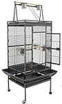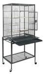 Quite naturally, all-metal construction is as durable as possible. The cage is double deck. Wrought iron is basic wire material. It’s sturdy, so even big parrots like Macaws can’t bend it. Epoxy finish that covers it is completely safe, bird-friendly, non-toxic.