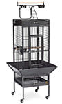 This is a large single-piece cockatiel cage for large and medium-sized birds. The whole construction is 62 inches tall, while the cage itself is 18 by 18 inches on the perimeter and 35 inches tall. Although lengthwise it is not perfect for a cockatiel, the fact that it is designed with a playing area at the top makes it quite an acceptable home for your bird. It has both vertical and horizontal bars with approximately 7/10-inch spacing. This iron cockatiel birdcage with powder coating is available in three colors: black, green, and white.